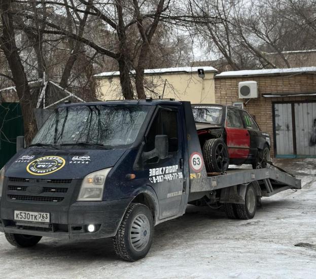 Эвакуатор Ford Transit в г. Самара с ломаной платформой, лебедкой и подкатными