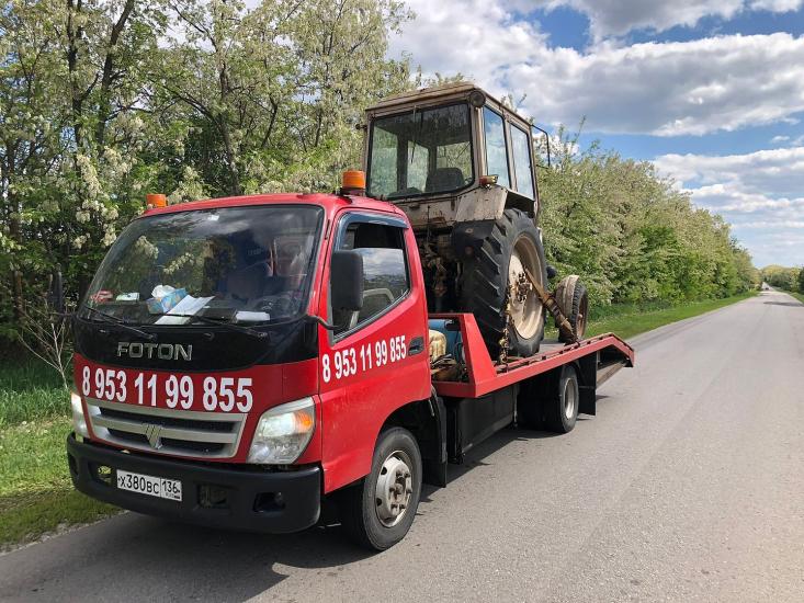 Эвакуатор Foton в село Лосево с ломаной платформой, подкатными и лебедкой