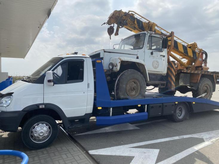 Эвакуатор Газ 33106 в городе Славянск-на-Кубани с ломаной платформой, лебёдкой и подкатными