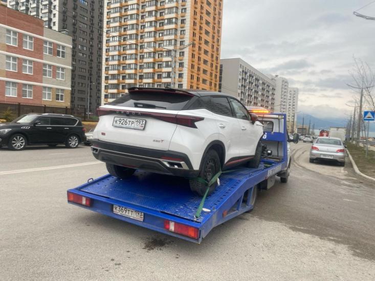 Эвакуатор Газель Бизнес в г. Новороссийск с ломаной платформой, лебедкой и подкатными