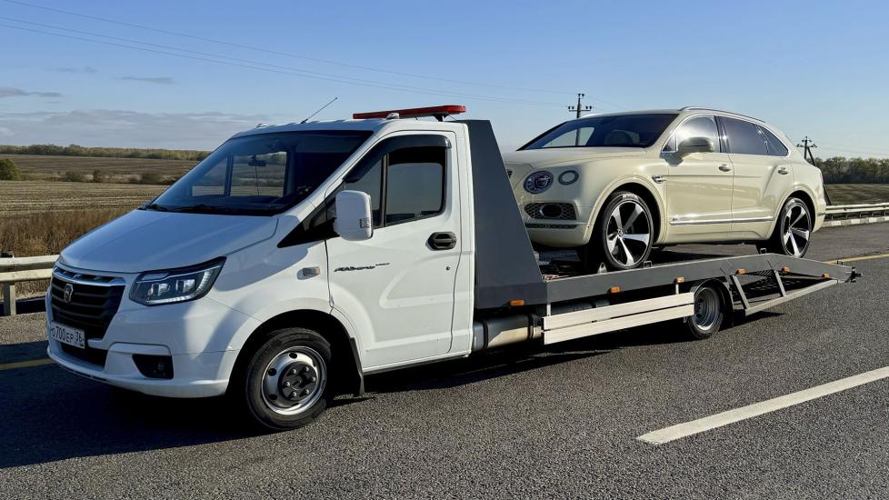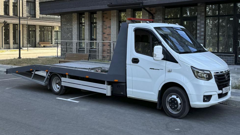 Эвакуатор Газель Некст в городе Воронеж с ломаной платформой, подкатными и лебедкой
