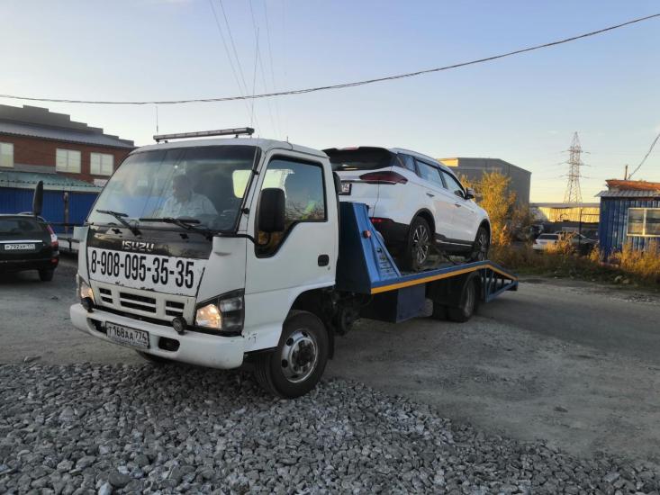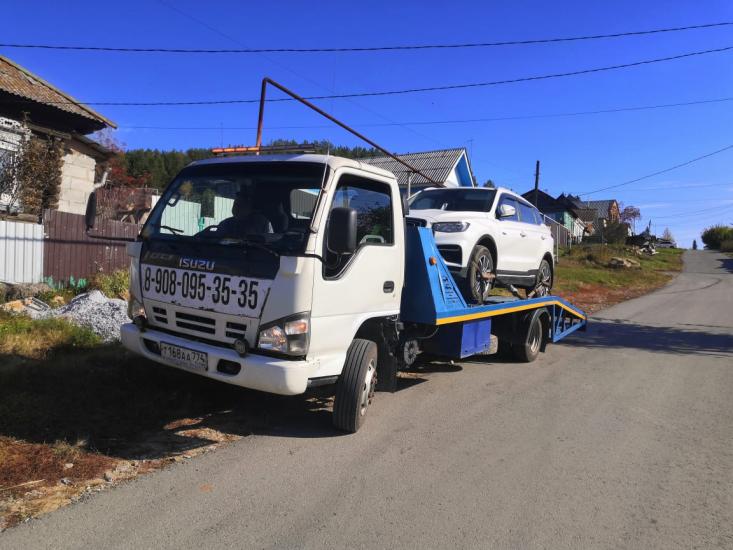Эвакуатор Isuzu NQR в г. Миасс с лебедкой и подкатными, манипулятором и ломаной платформой