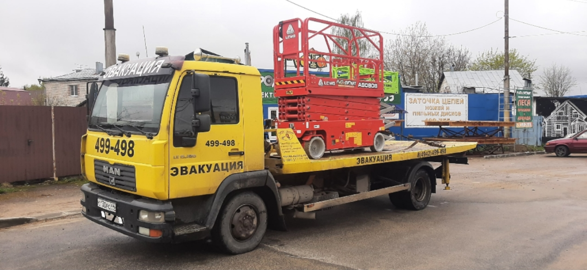 Эвакуатор MAN 8.150 в городе Кострома со сдвижной платформой и лебёдкой